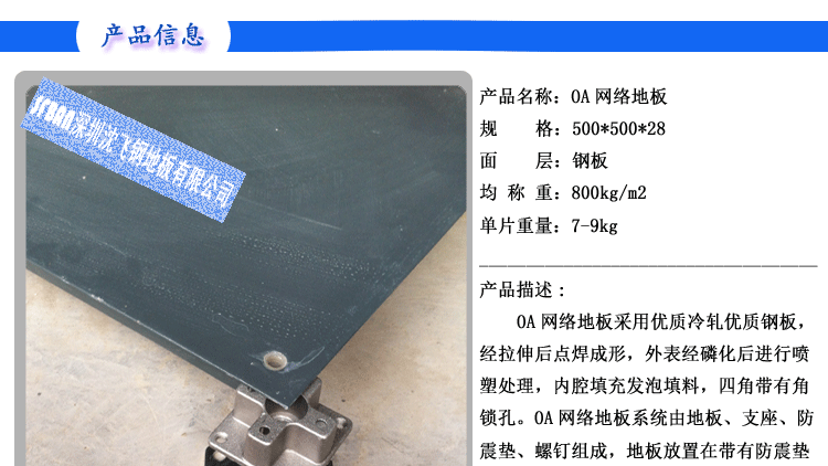 OA智能化架空活動地板(OA500) 【型號規格】 OA500×500×28 mm 【產品概述】 OA500智能化全鋼架空活動地板采用優質鋼板經拉伸成型、點焊、...